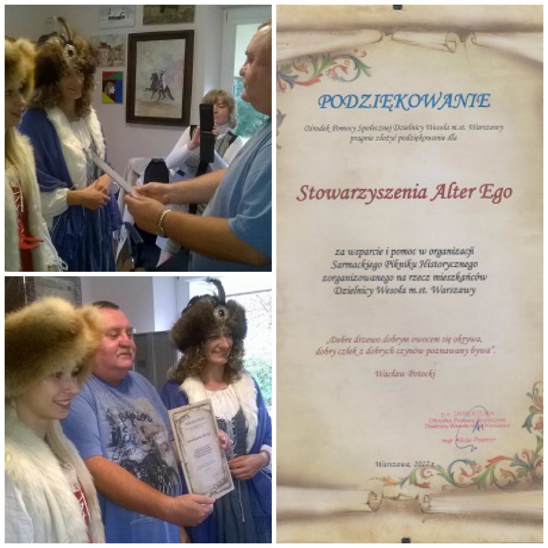 Kolejny Piknik z cyklu Dni Seniora, jaki odbył się przy współorganizacji Stowarzyszenia Alter Ego okazał się udaną imprezą, spotkał się ze sporym odzewem uczestników. Za udział w przygotowaniach do Sarmackiego Pikniku Historycznego Stowarzyszenie otrzymało podziękowania, które odebrał sekretarz Stowarzyszenia Alter Ego – pan Krzysztof Arnold.